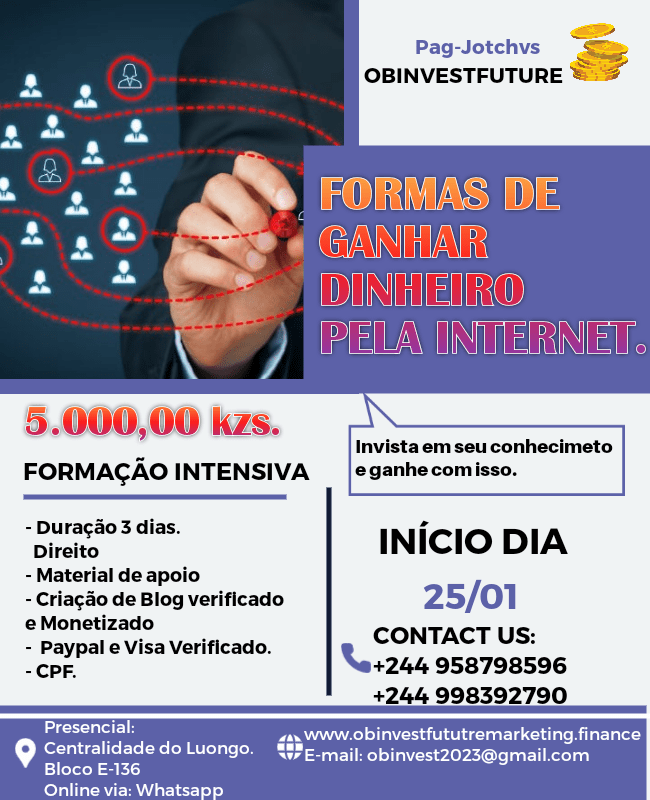 Para fazer parte da mentoria basta entrar em contacto apartir do nosso suporte do whatsapp +244 998 392 790.